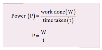 We can define power as the rate of doing work, it is the work done in unit time. The SI unit of power is Watt (W) which is joules per second (J/s). Sometimes the power of motor vehicles and other machines is given in terms of Horsepower (hp), which is approximately equal to 745.7 watts.