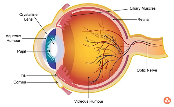 The Cornea: Imagine this to be like a window to a human eye. The cornea contributes to the major refraction of light (bending of light rays) entering our eyes. It forms the clear front surface of a human eye. It also makes sure that foreign substances do not enter the eye.